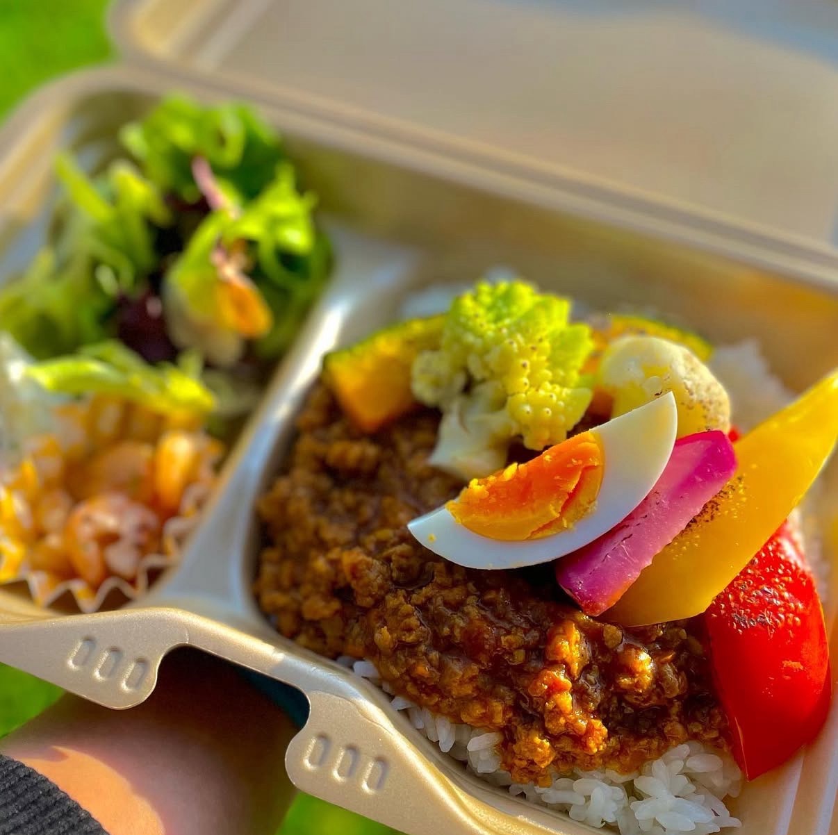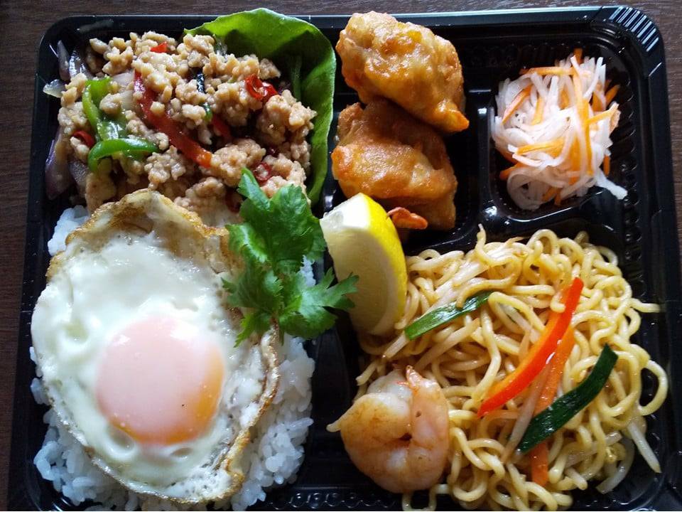 MENU:[アジアン弁当]ガパオ / ミーゴレン / 鶏の唐揚げ / 紅白なます